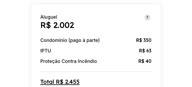Nossa plataforma foi desenhada para quem detesta letras miúdas: ao acessar um anúncio no nosso site ou aplicativo, você não vê apenas o valor do aluguel, nós mostramos o "pacote mensal", que inclui estimativas claras de condomínio, IPTU e seguro incêndio. Dessa forma, você sabe exatamente prever gastos extras ao escolher um imóvel antes mesmo de agendar a visita.
